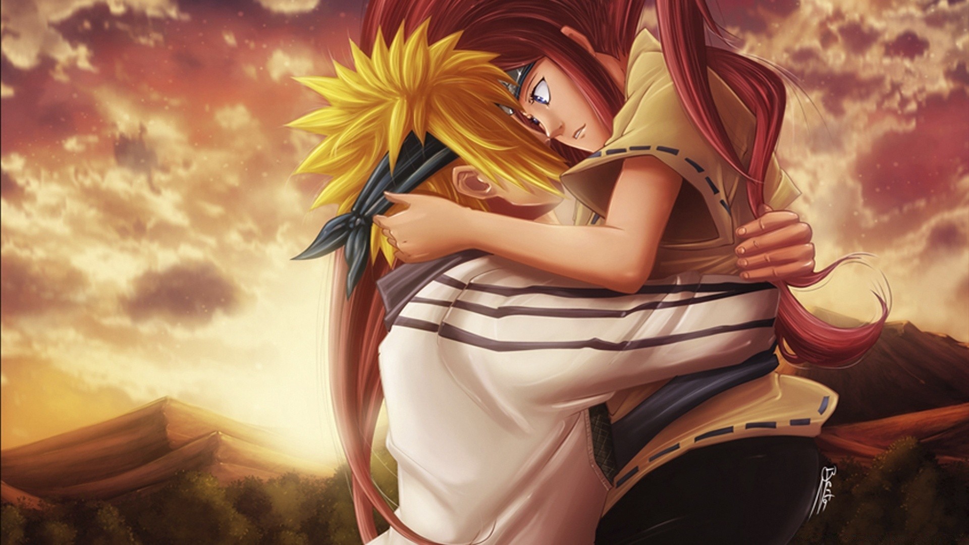 Umarmen sie einen mann und ein mädchen in der naturUmarmen Sie einen Mann und ein Mädchen in der Natur
