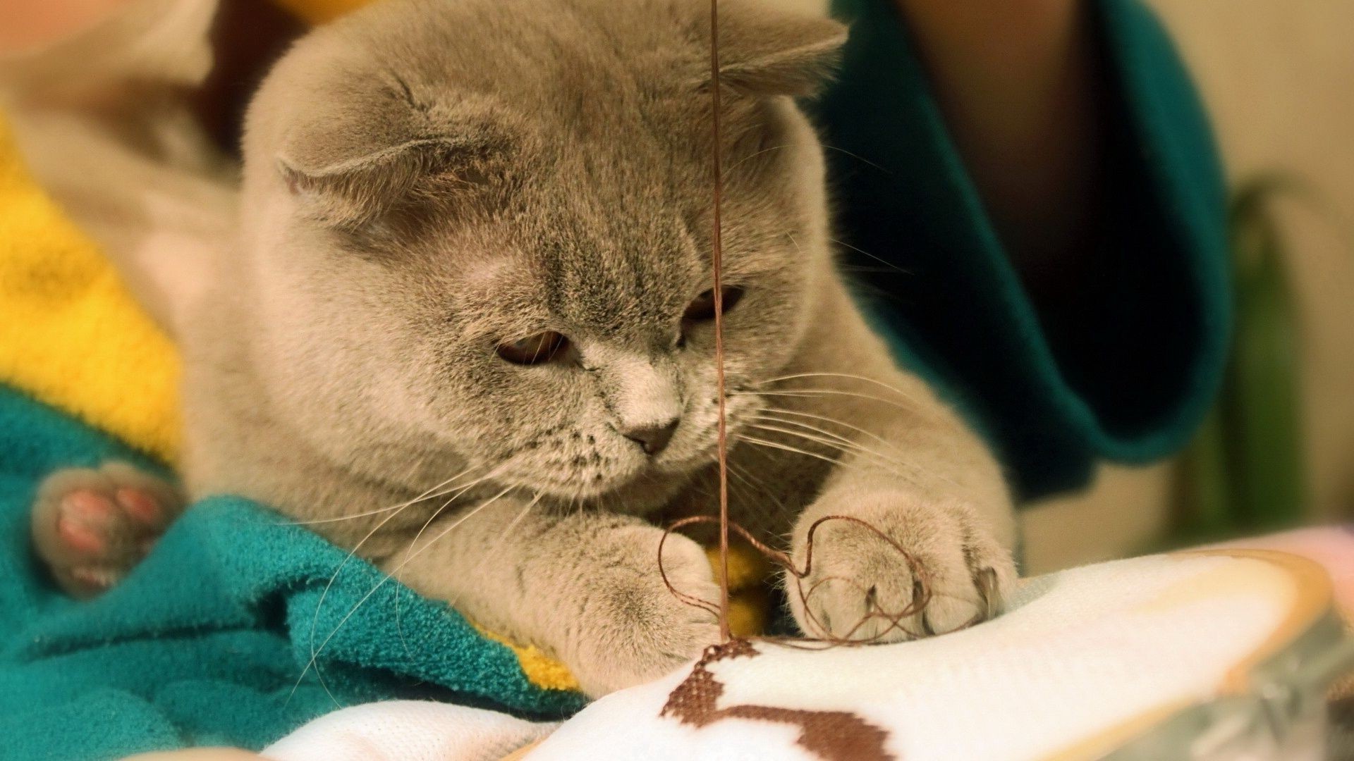 Weiße katze spielt mit einem pendel