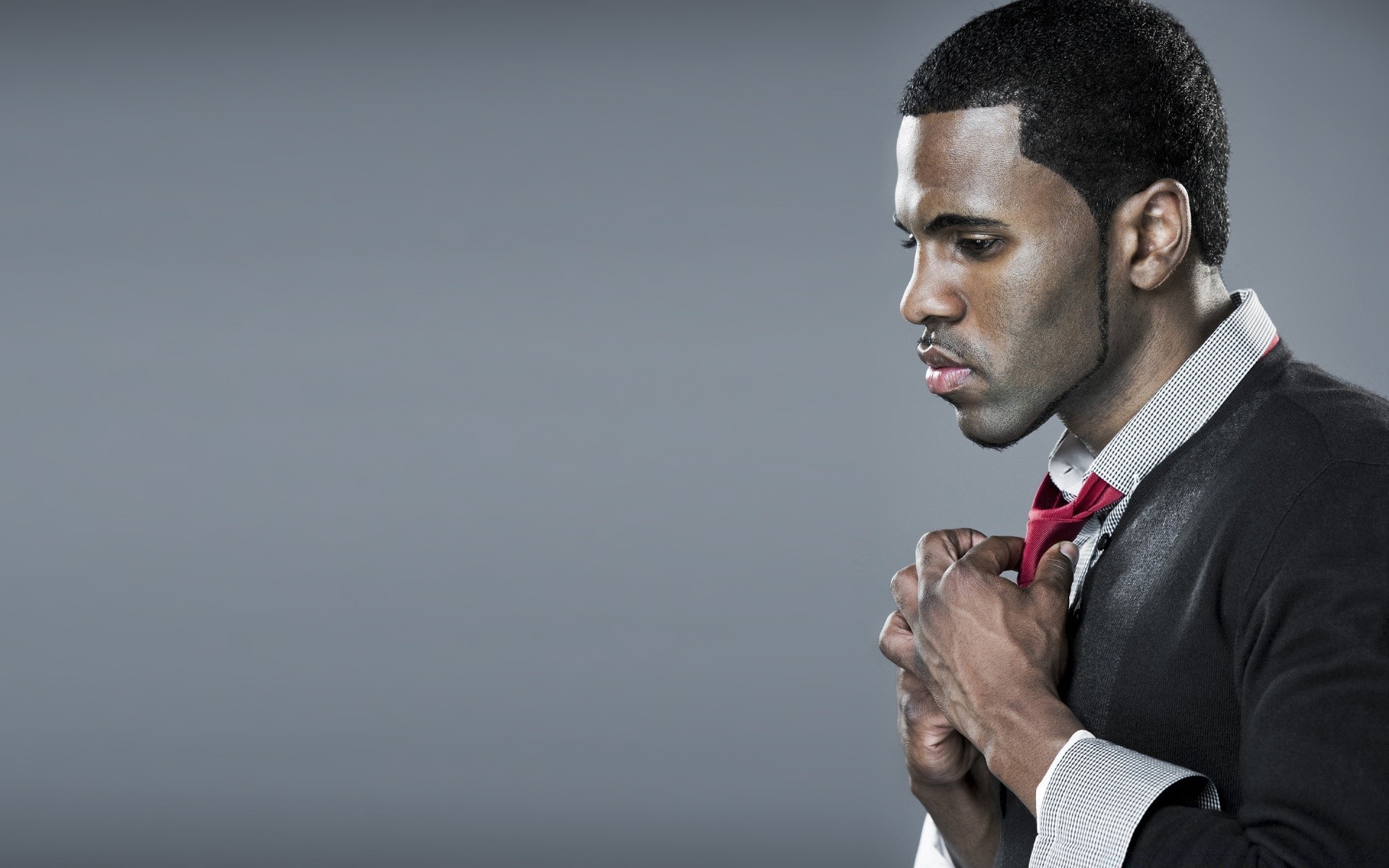 Michael Jackson im Anzug auf schwarzem Hintergrund