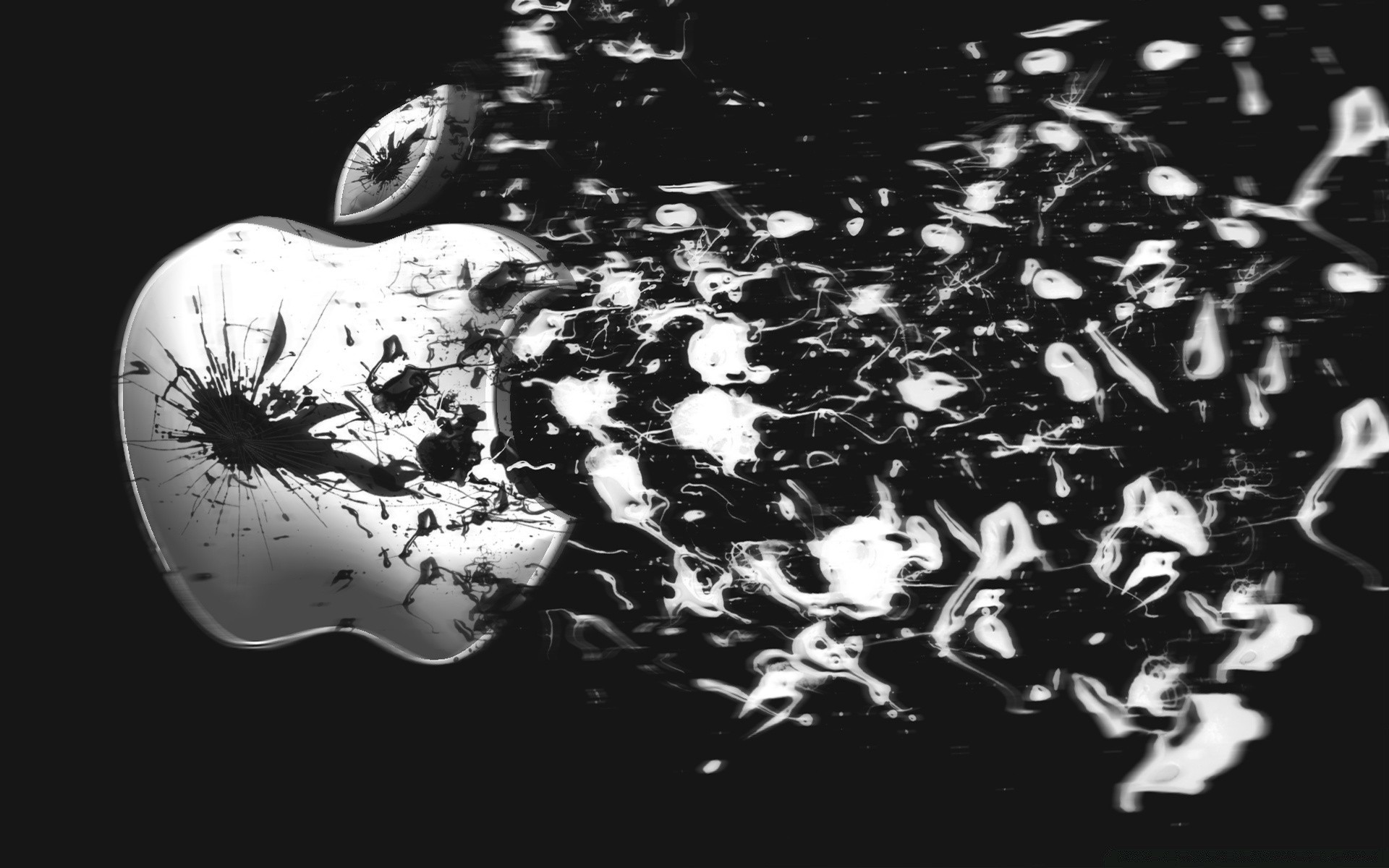 Schwarz-Weiß-Bild eines zerrissenen Apple-Zeichens