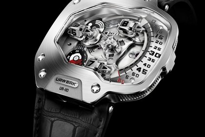 Verchromte Armbanduhr auf dunklem Hintergrund