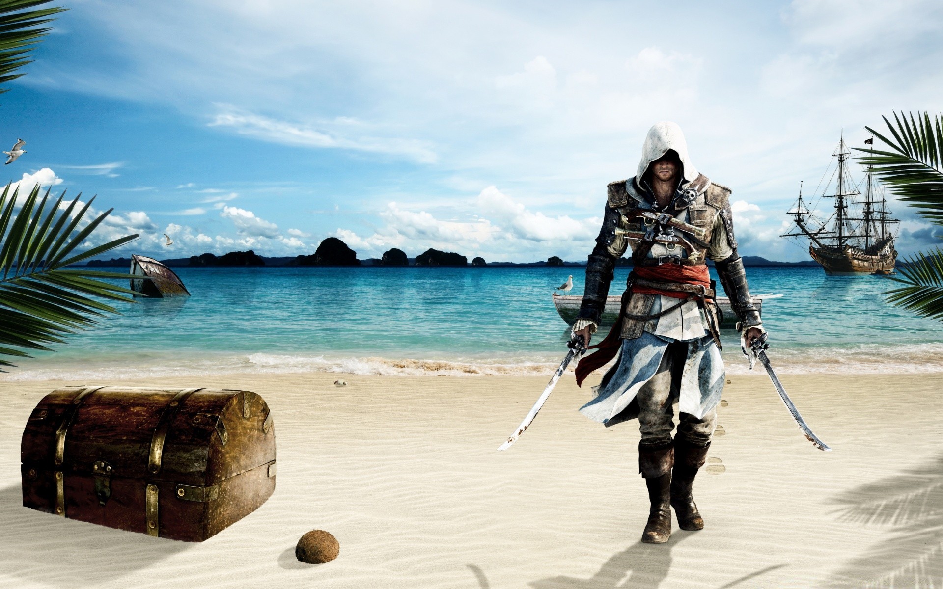 Attentäter vor dem Hintergrund des azurblauen Meeres