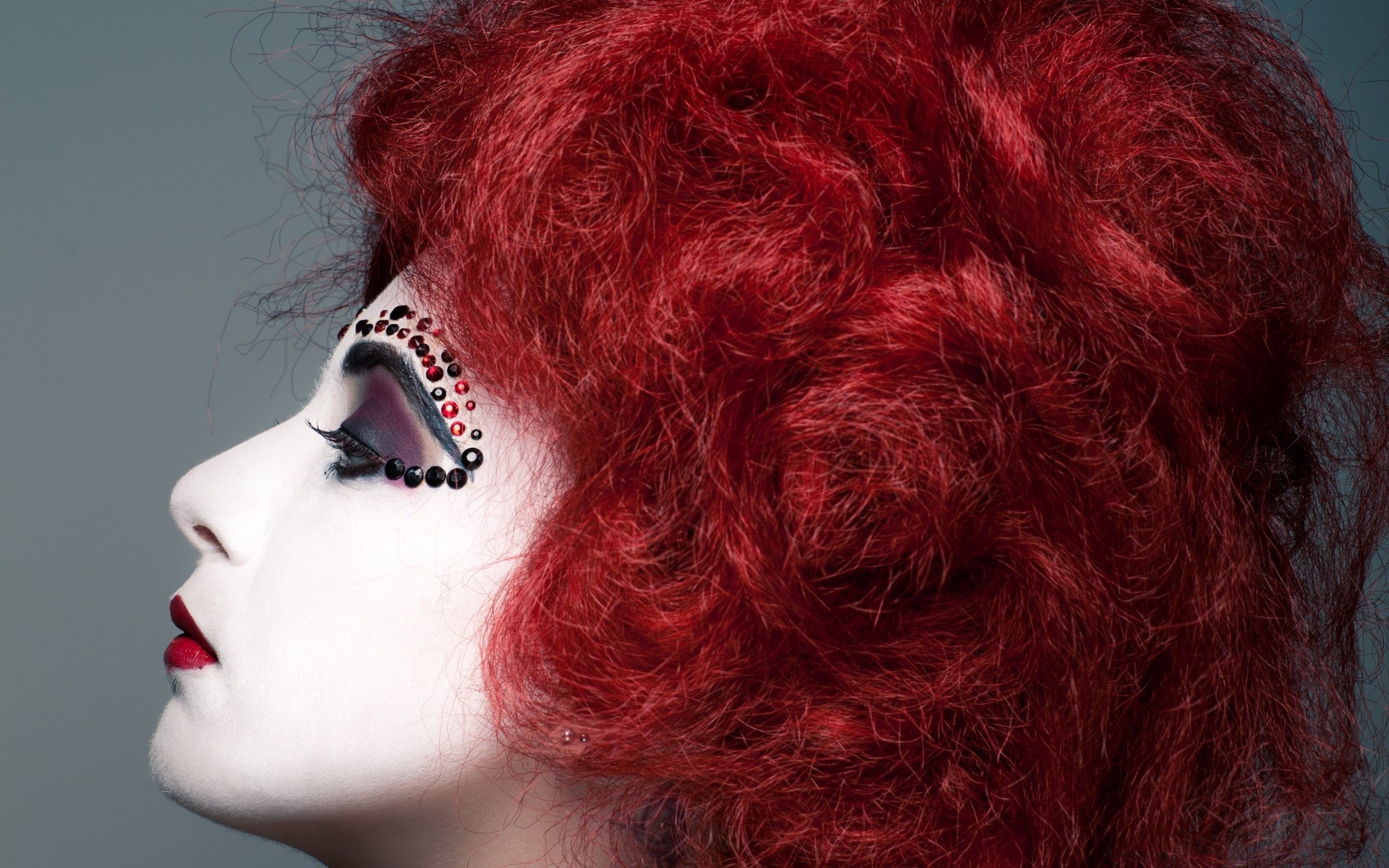 Ein rothaariges mädchen mit strasssteinen über den augenbrauenEin rothaariges Mädchen mit Strasssteinen über den Augenbrauen