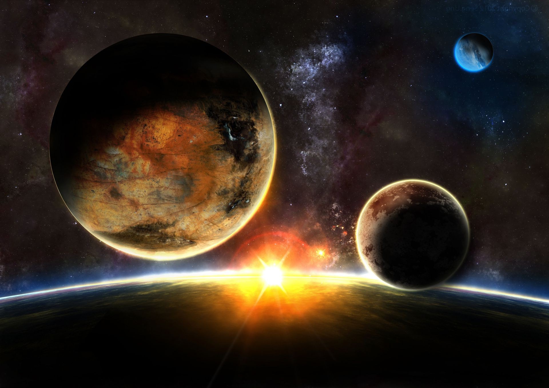 Raum und Planeten im Fantasy-Stil