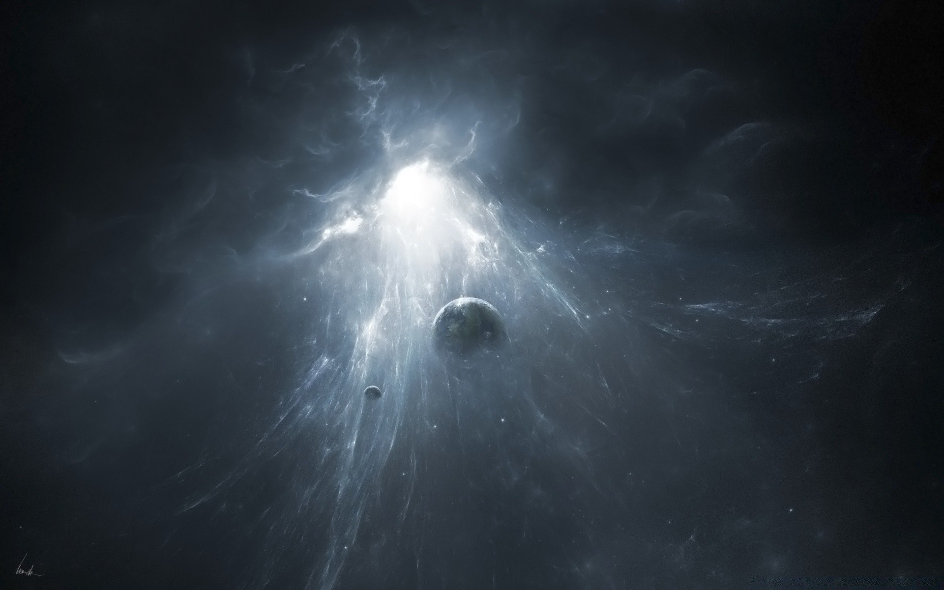 Der beleuchtete Teil des Planeten in der schwarzen Galaxie