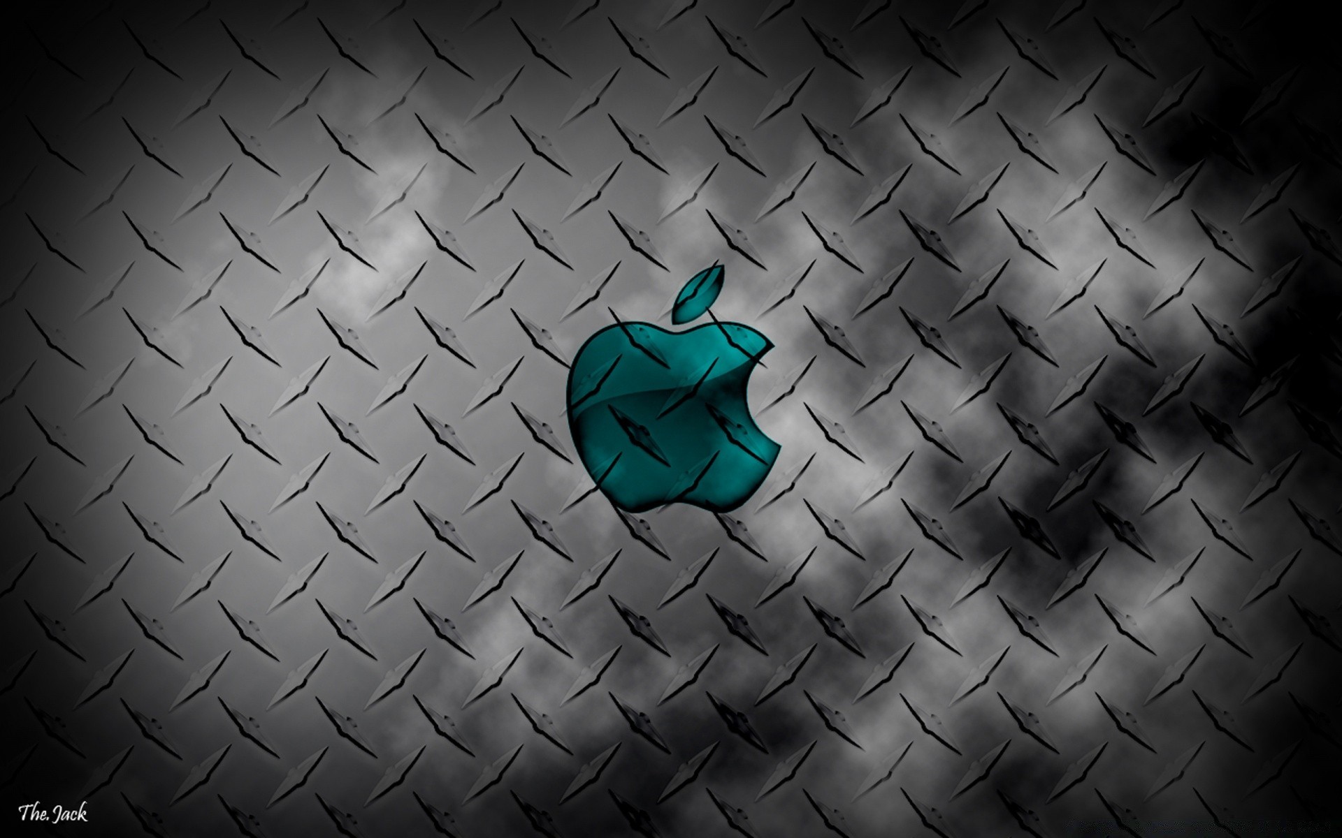 Türkisfarbener apfel auf grauem hintergrund für den desktopTürkisfarbener Apfel auf grauem Hintergrund für den Desktop