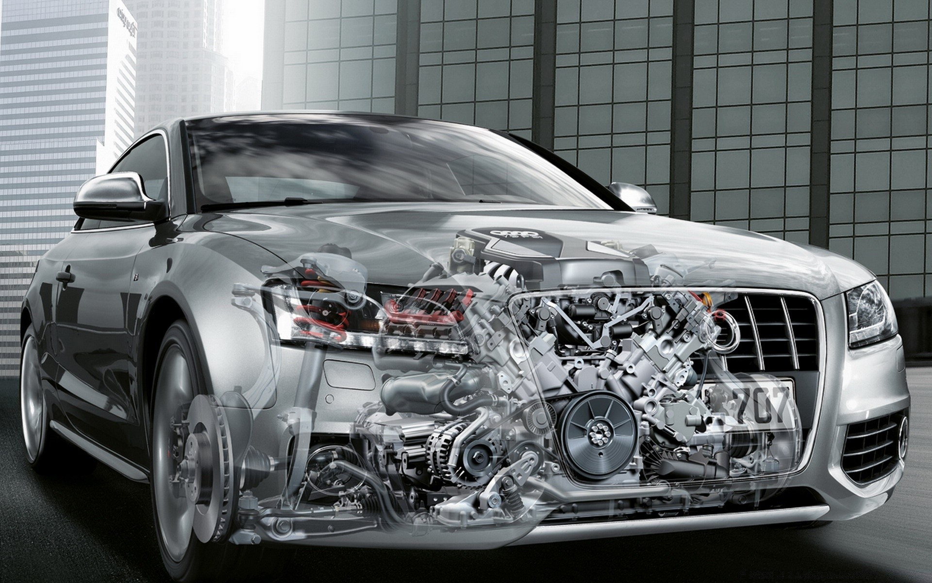 Audi A5 Foto eines Autos mit durchscheinendem Motor