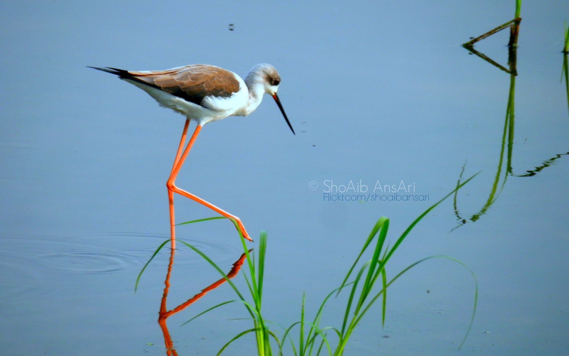 Ein Reiher schreitet auf der Suche nach Nahrung durch den Teich