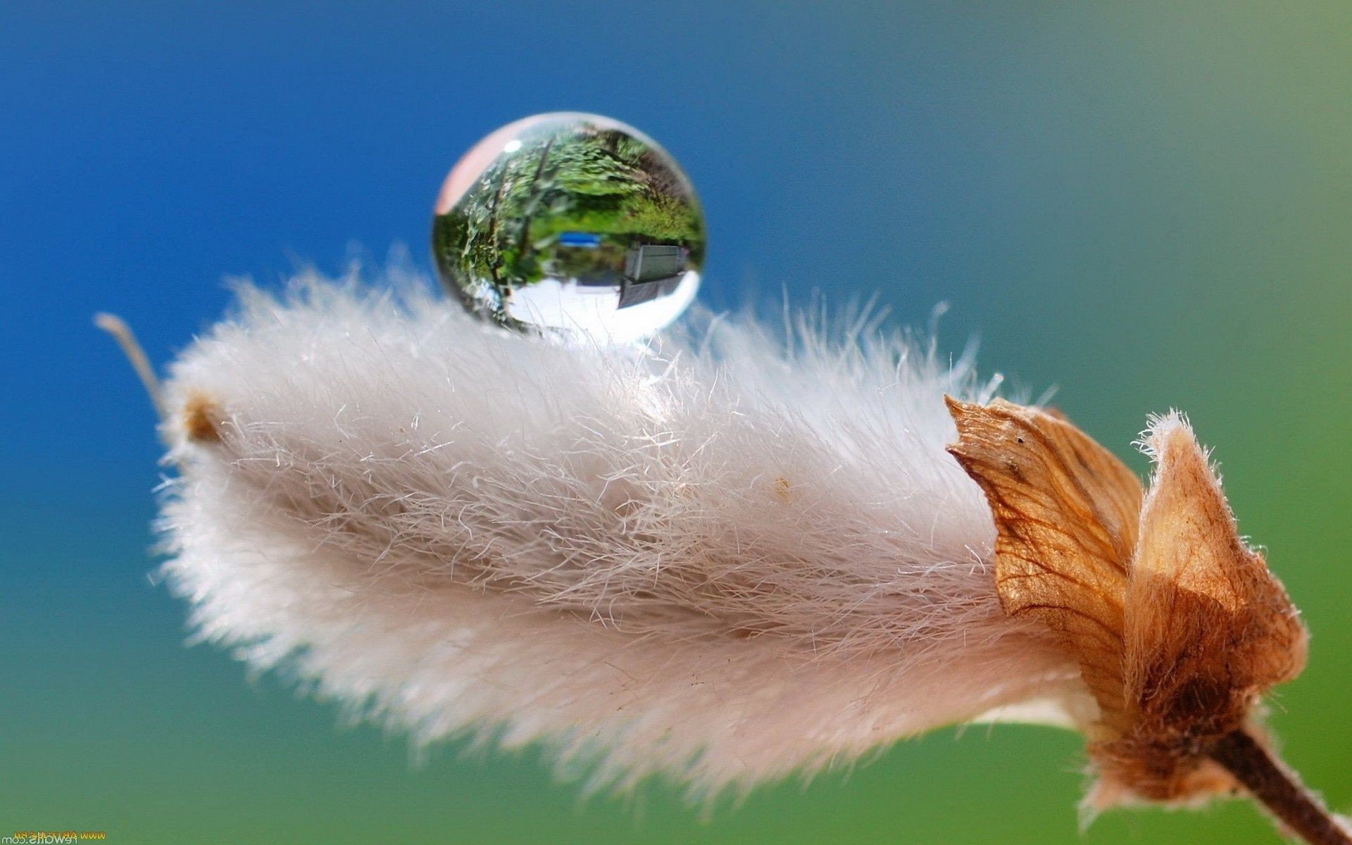 Ein Tropfen Wasser auf der Nabelschnur eines Zweigs