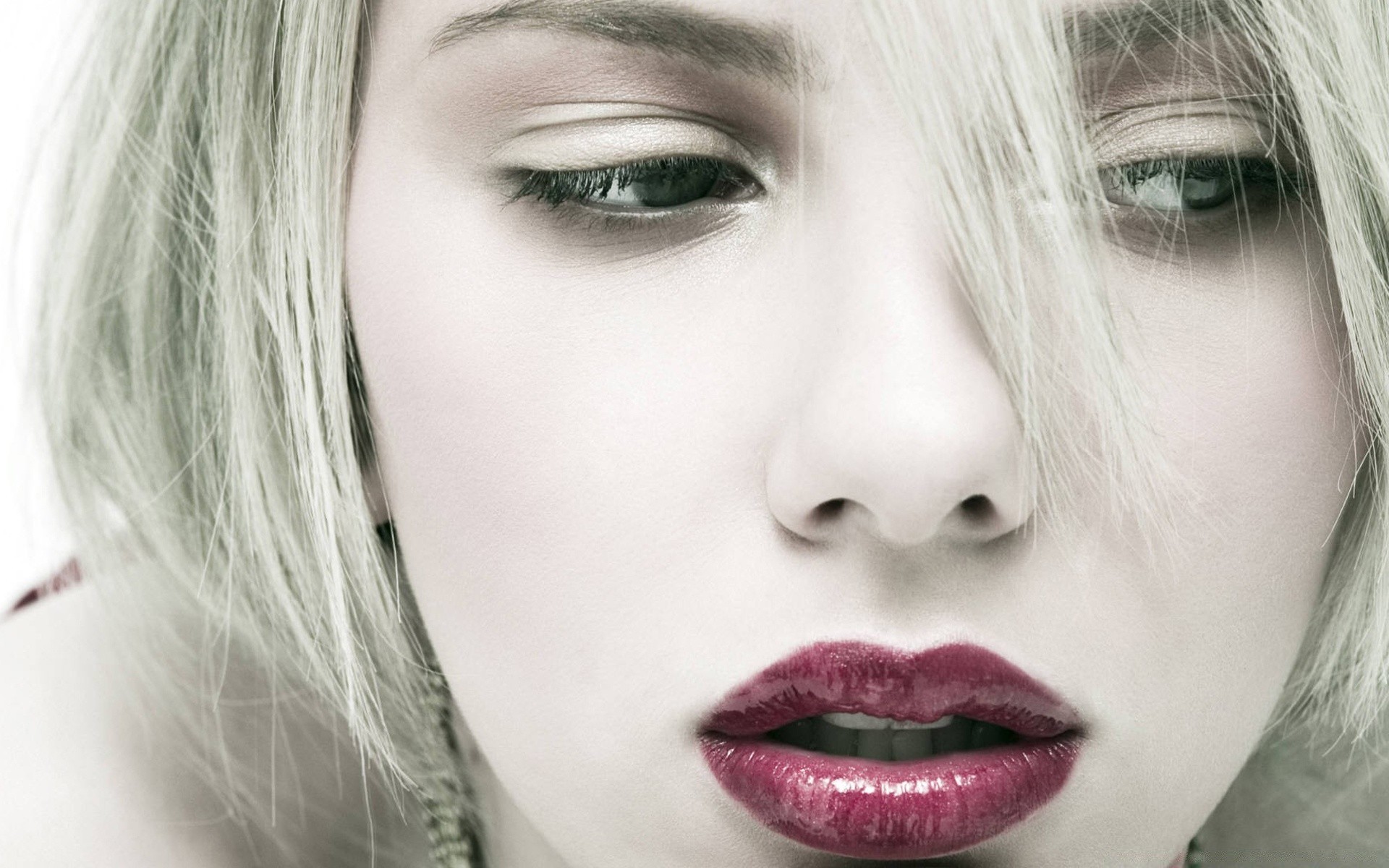 Blondine mit hell gefärbten Lippen