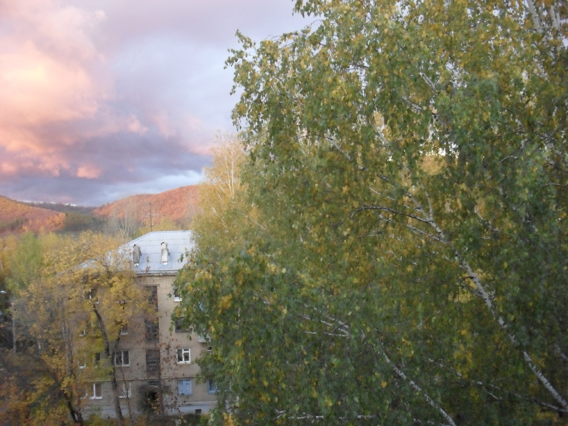 Blick aus dem Fenster eines Hochhauses mit Holz