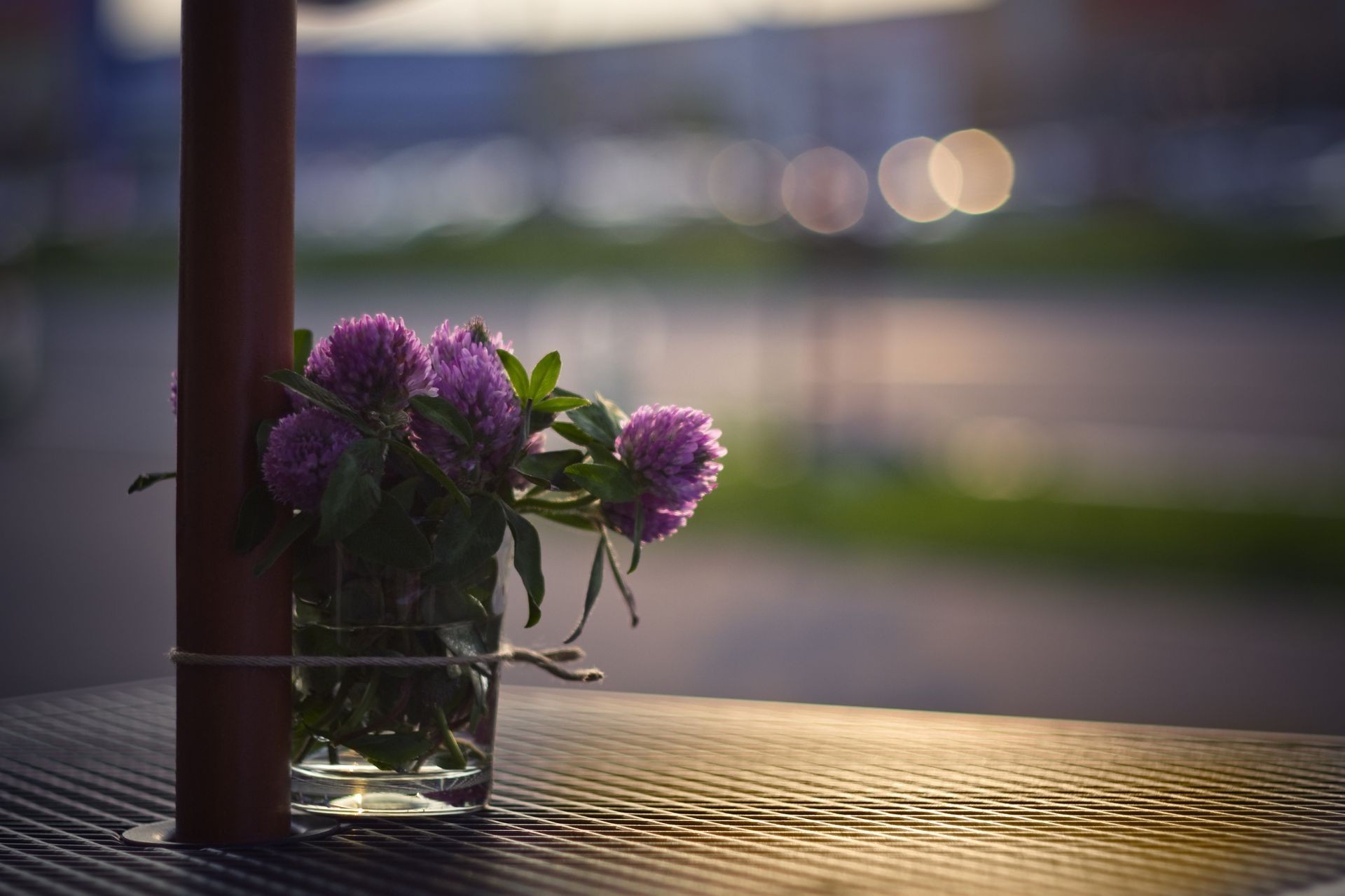 Einsamer blumenstrauß aus wildblumen in einem glasEinsamer Blumenstrauß aus Wildblumen in einem Glas