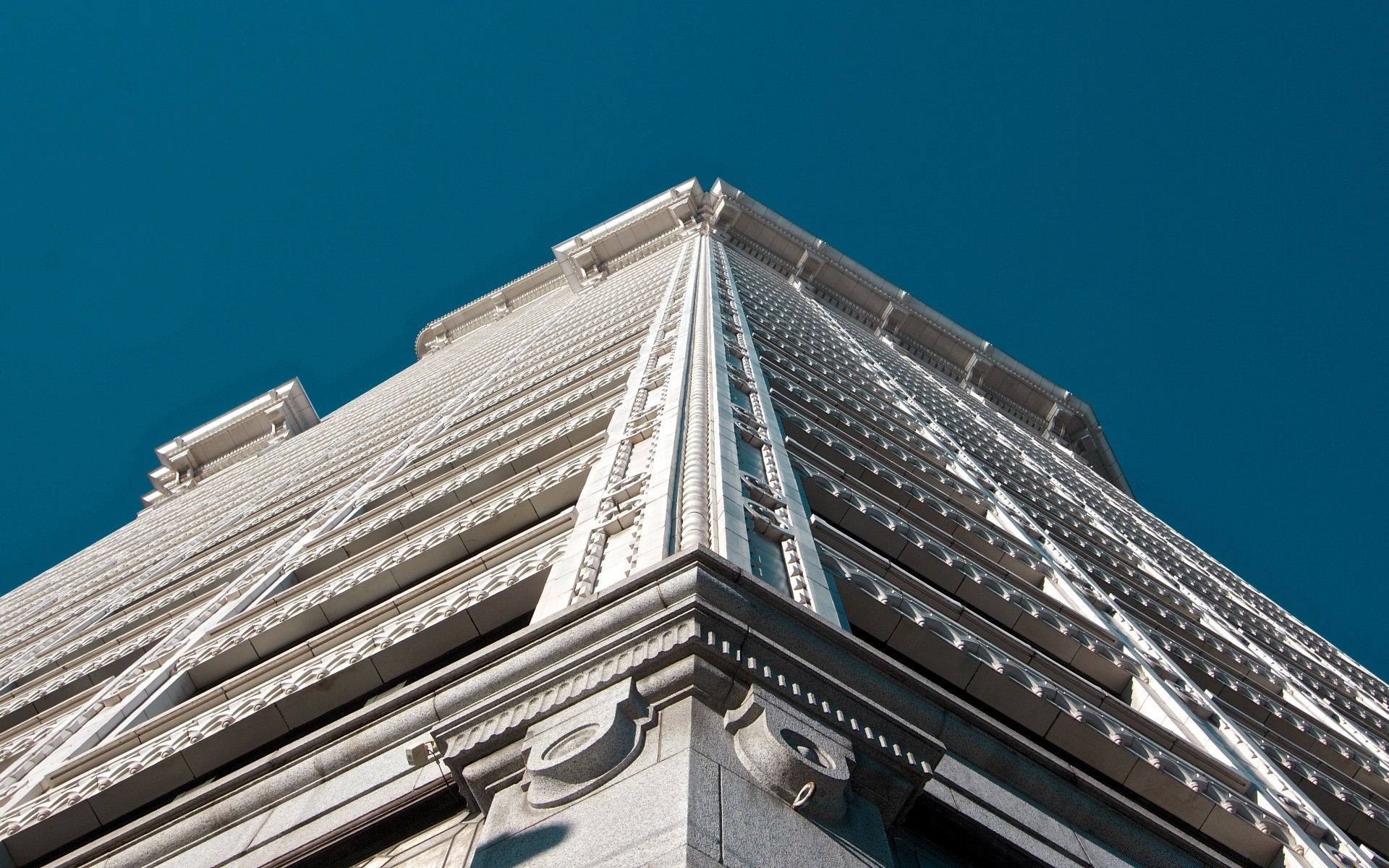 Schwarz-Weiß-Bild der Hauswand von der Straße