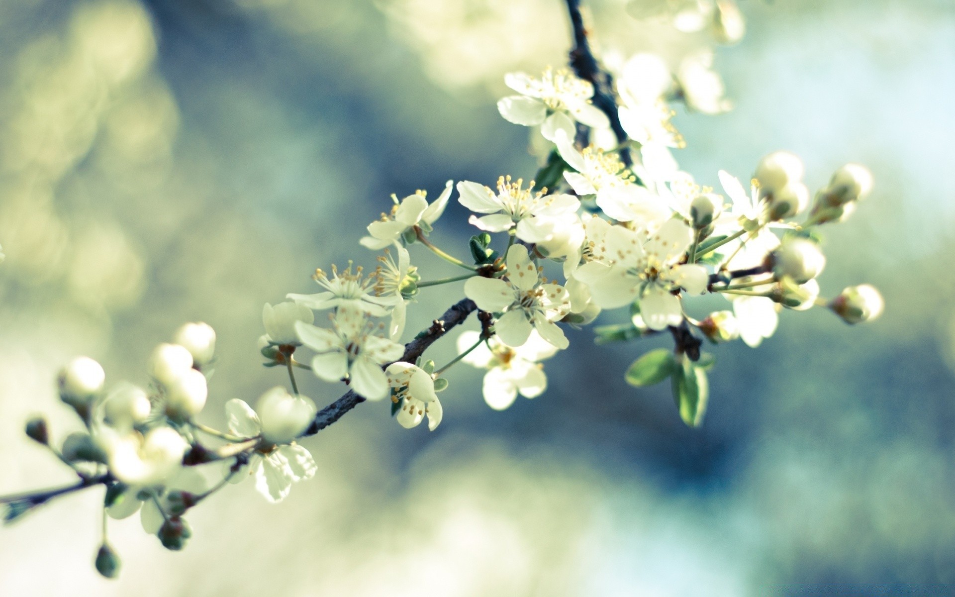 Kirschblüte auf einem Zweig auf Himmelshintergrund