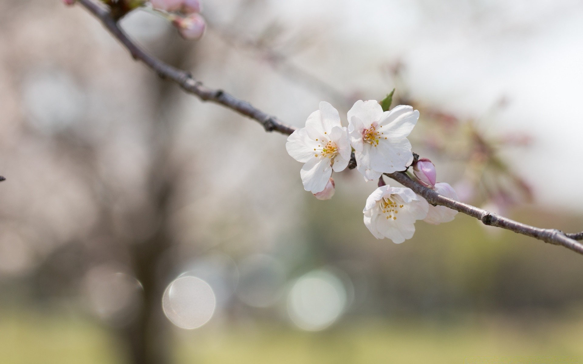 Blühende Sakura-Bäume auf einer grünen Lichtung