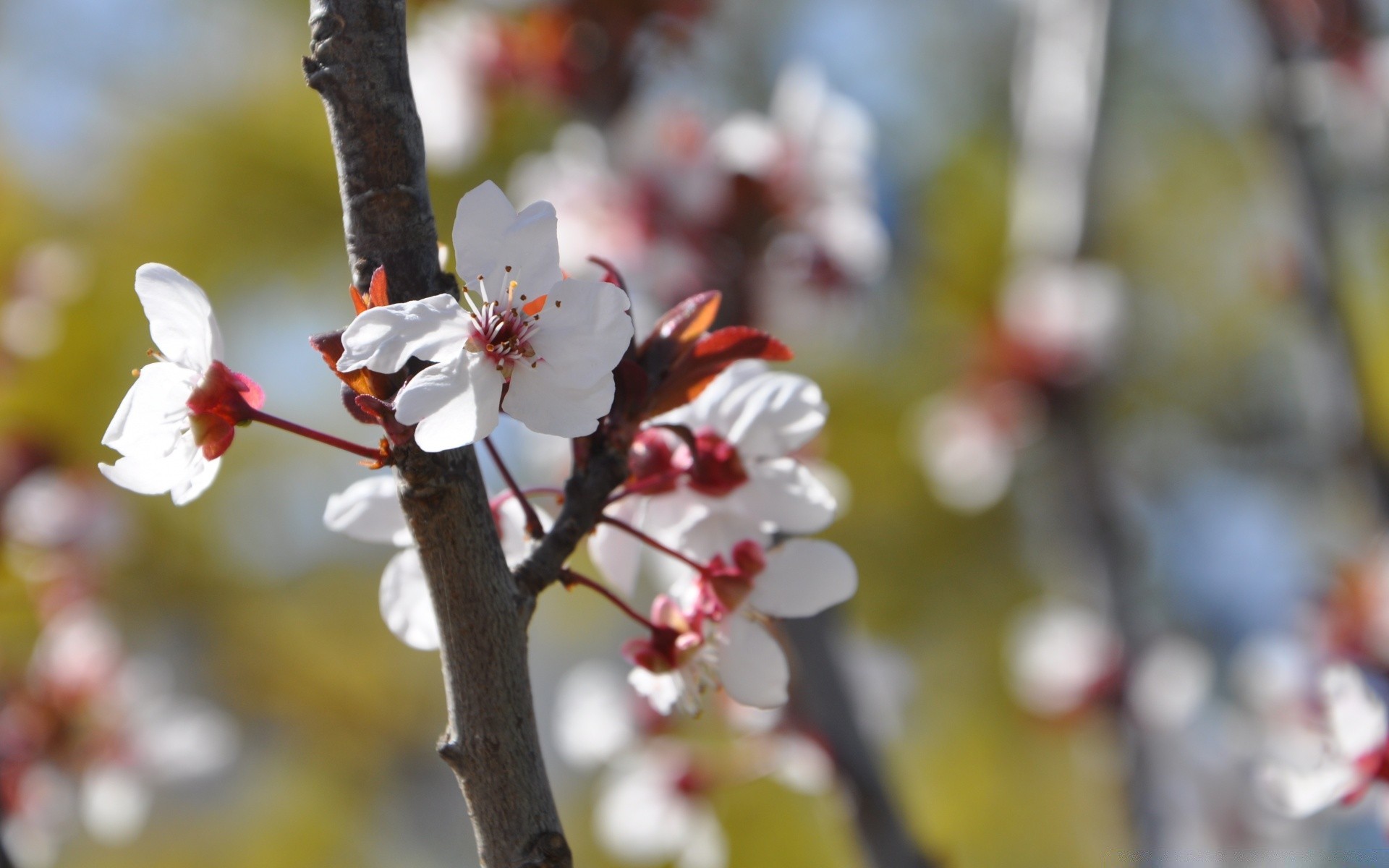 Nahaufnahme von Kirschzweigen im Frühling blühen