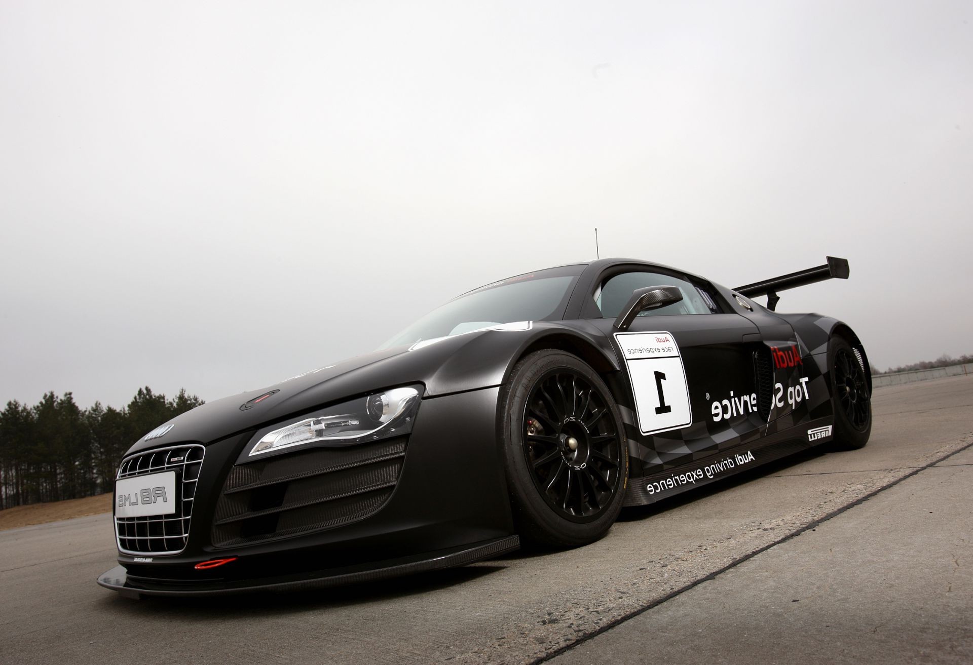 Sport schwarzes Auto auf dem Parkplatz auf grünem Hintergrund