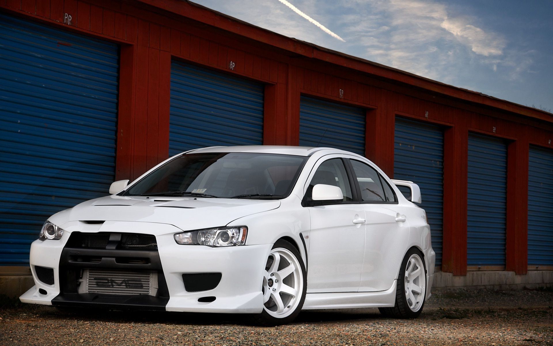Ein sportliches weißes Auto spiegelt sich in einer Pfütze wider