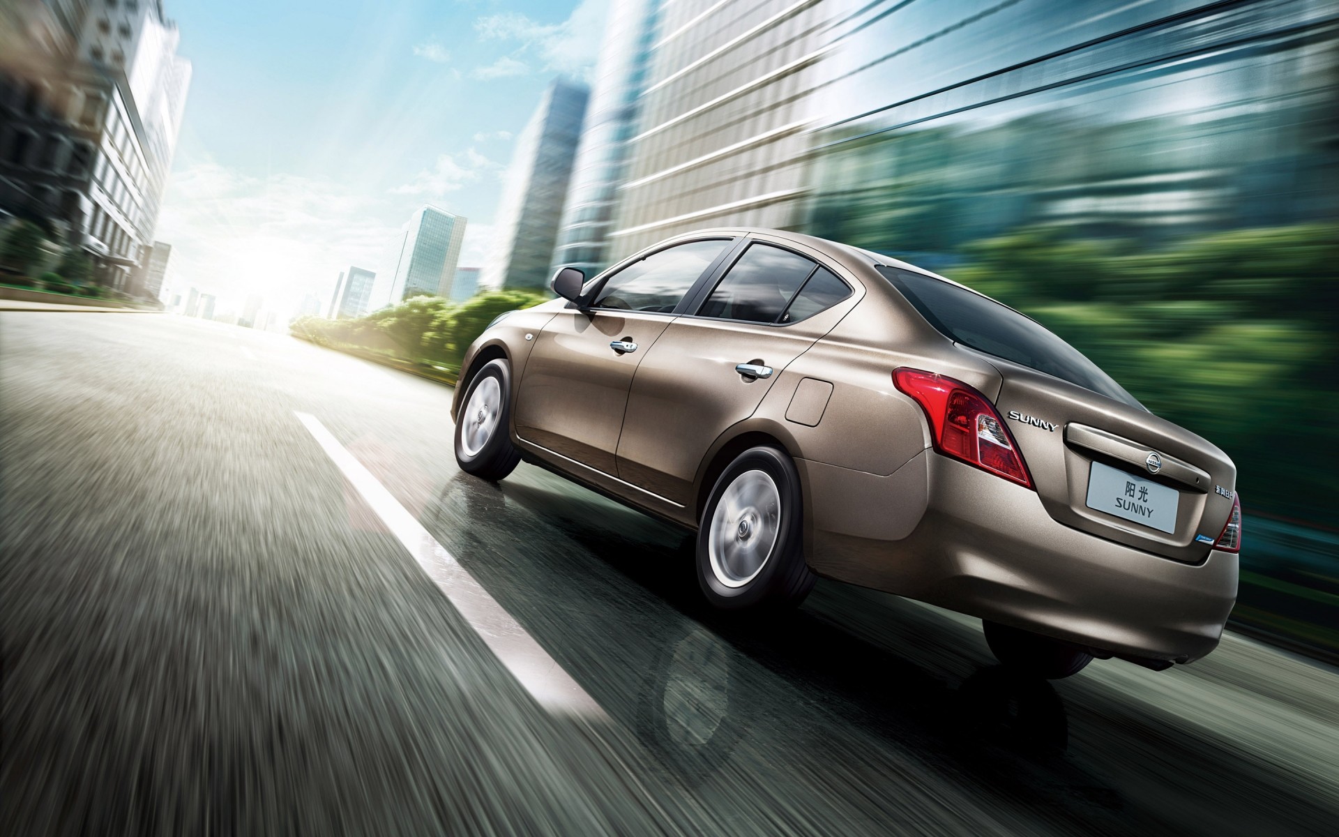 Auto rast schnell durch die Stadtstraße