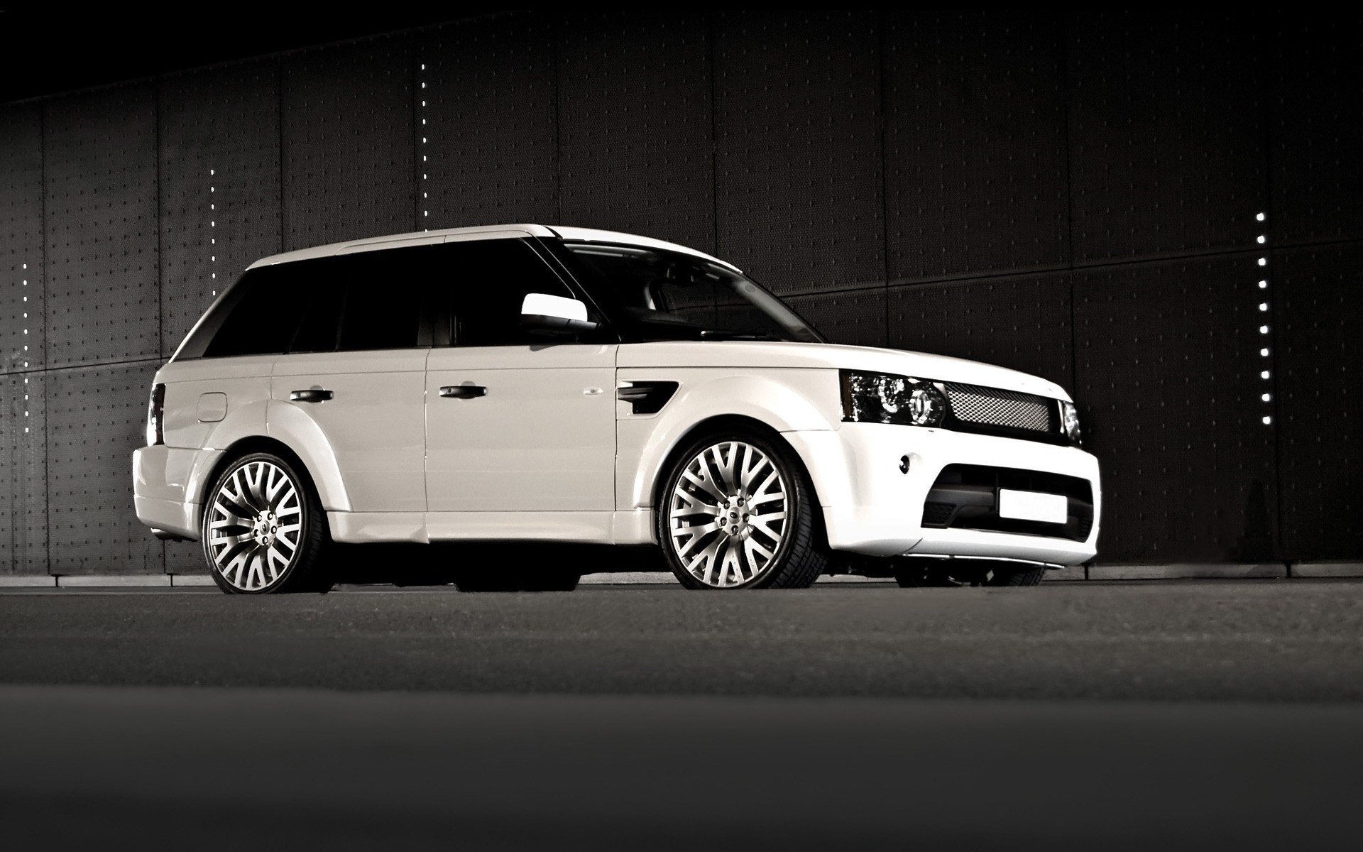 Weißes Range Rover-Auto auf grauem Hintergrund