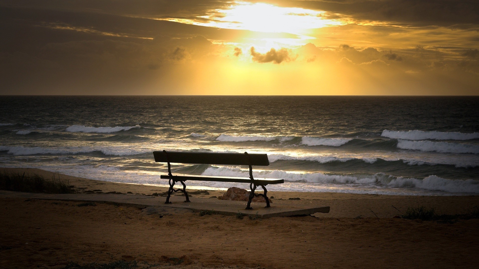 Schwarz-weiß-landschaft bank und autobahn im vordergrund hinten viele steine oben am himmel mit wolkenSchwarz-Weiß-Landschaft Bank und Autobahn im Vordergrund hinten viele Steine oben am Himmel mit Wolken