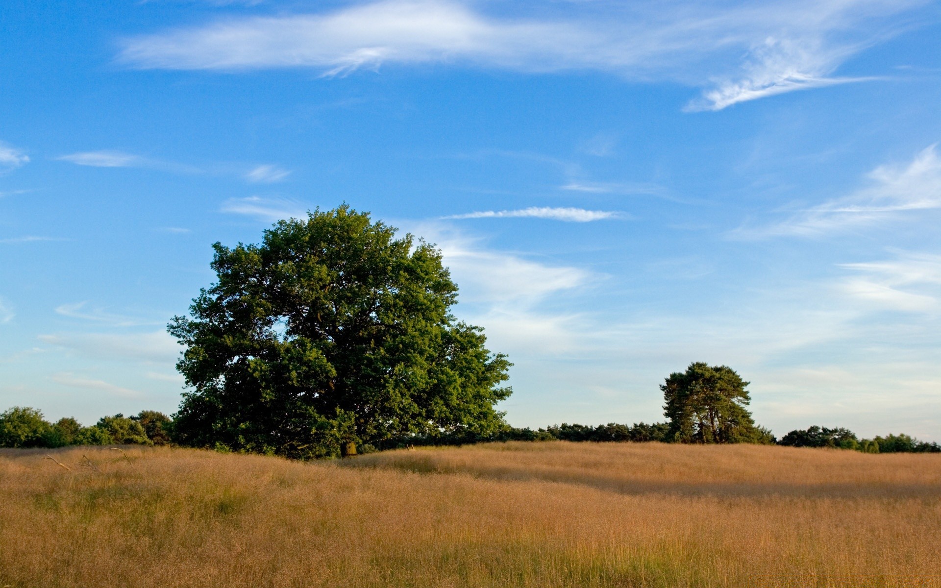 Herbstliche Landschaft. Wald, grünes Feld, Fluss