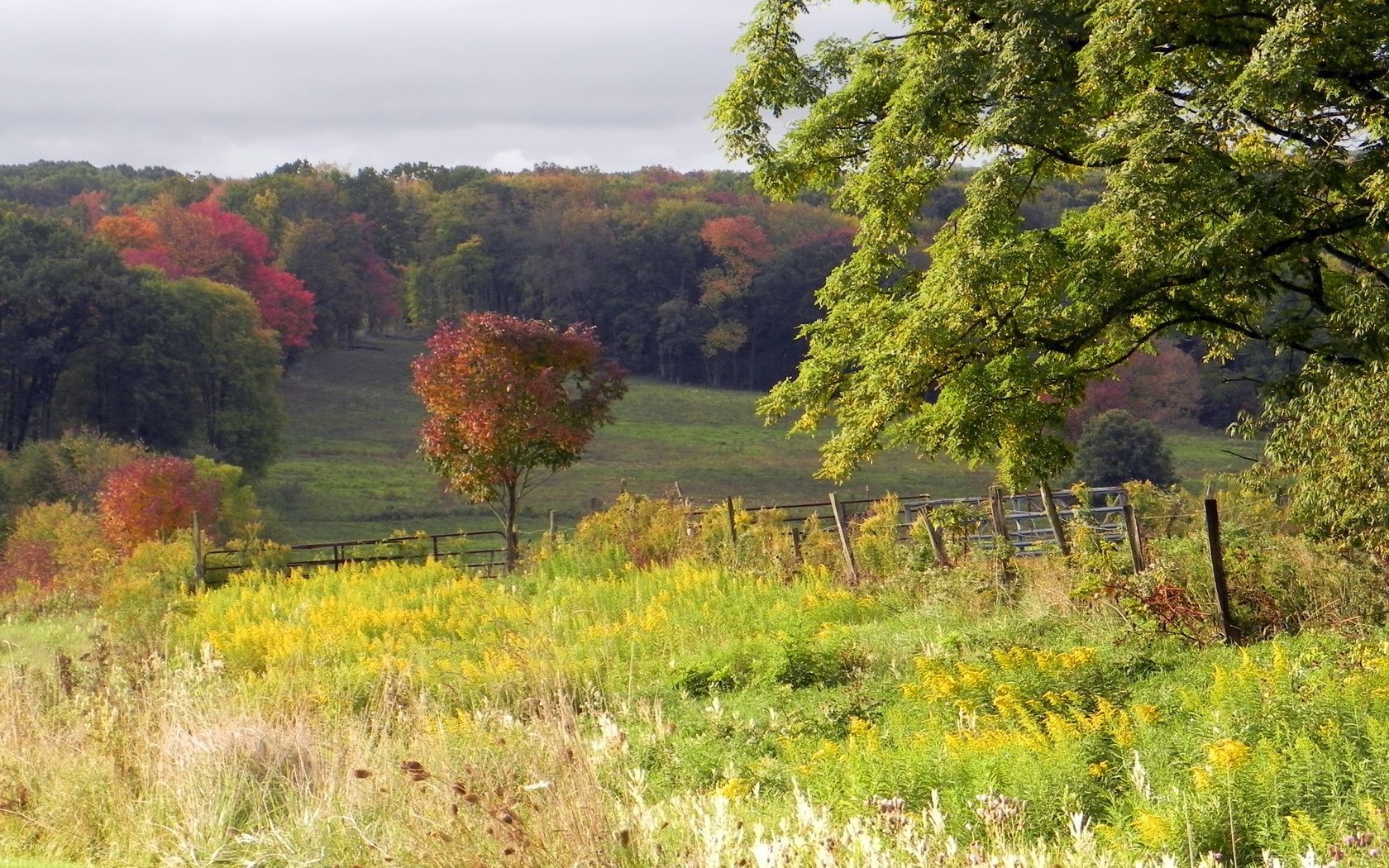 Landwirtschaft auf grünen Wiese Hintergrund. Gelbe Blume. Z