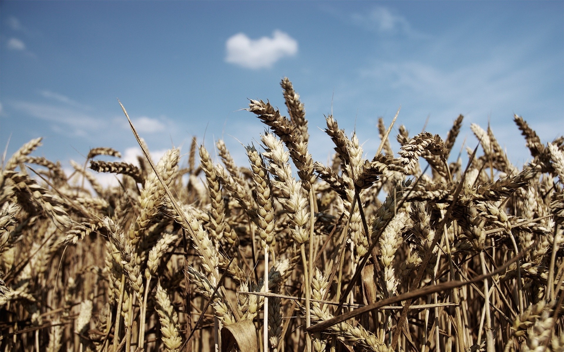 Die Ähren des Weizens im Feld vor dem Hintergrund des Himmels