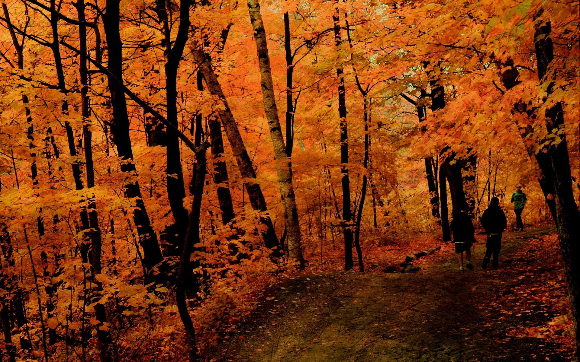 Im dichten Wald im Herbst bei schlechter Beleuchtung