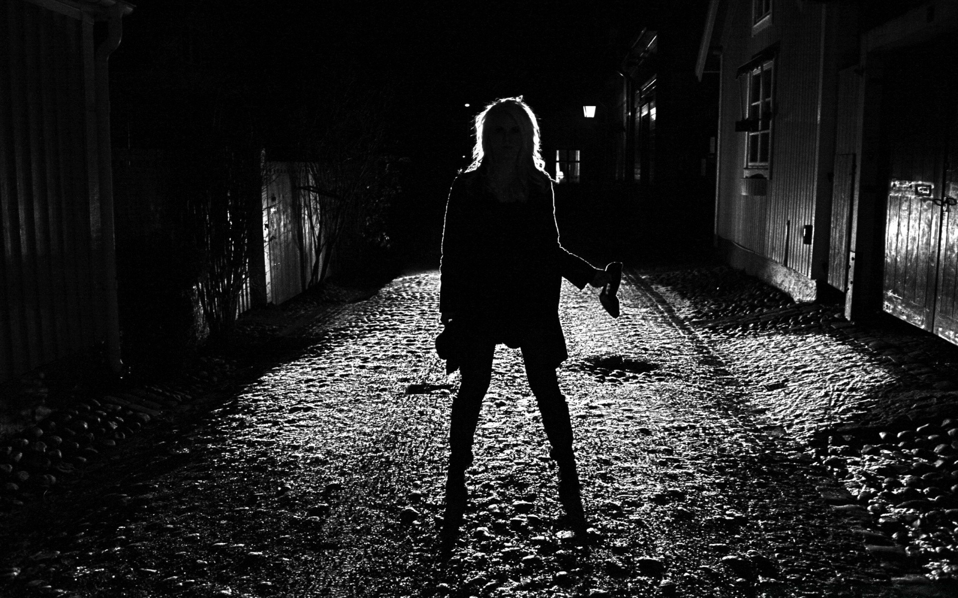 Dunkle waldlandschaft in der nacht schwarz-weiß-fotoDunkle Waldlandschaft in der Nacht Schwarz-Weiß-Foto