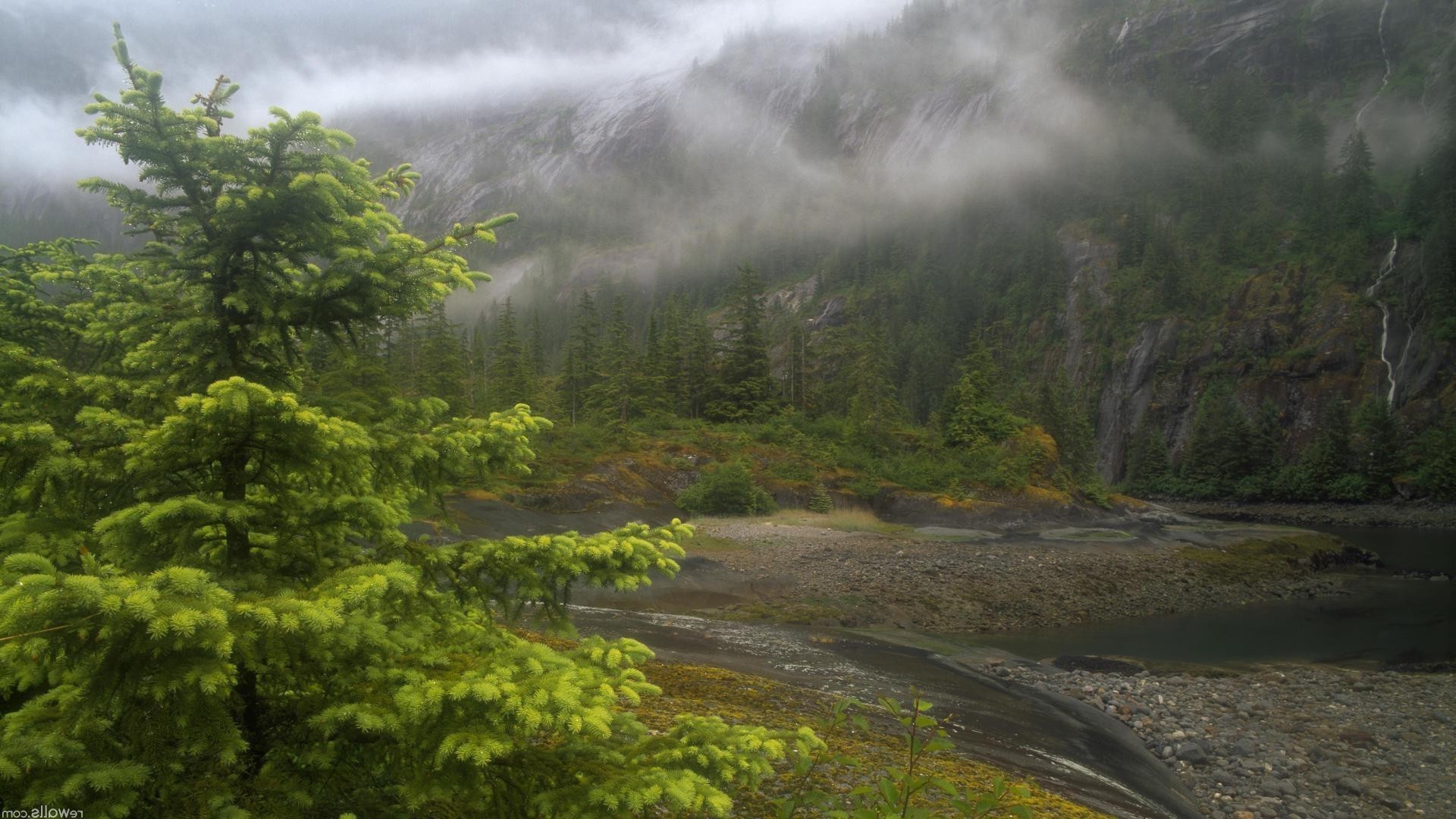 Berge, die mit einer grünen Walddecke bedeckt sind