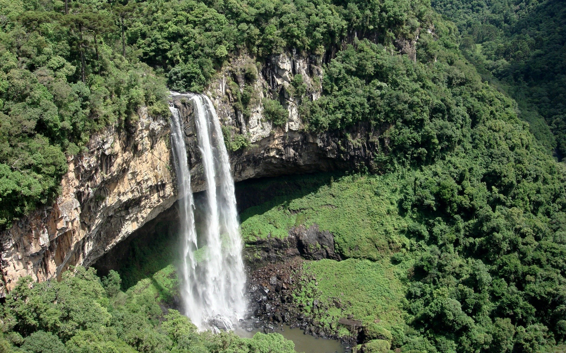 Ein riesiger Wasserfall inmitten grüner Natur