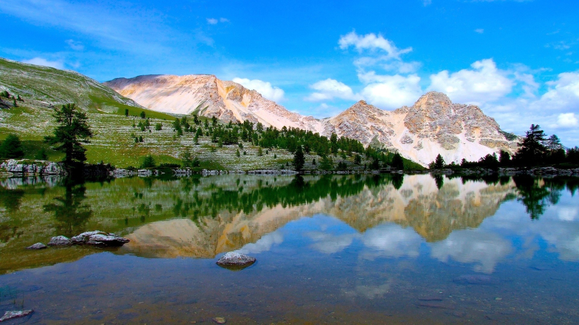 Die Reflexion der Berge auf dem Spiegel des Sees