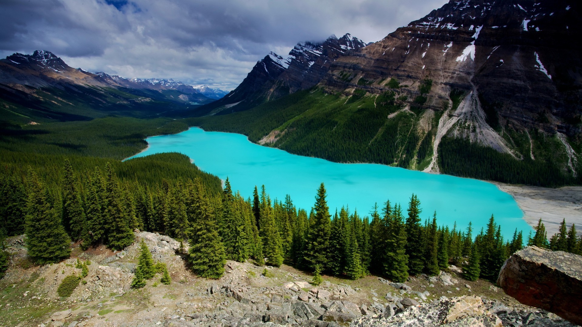 Strahlend blaues Meer und Berge