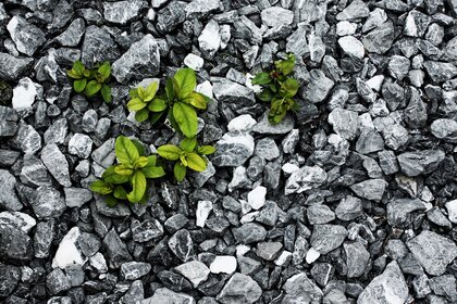 Grüne Blätter auf schwarzem Stein