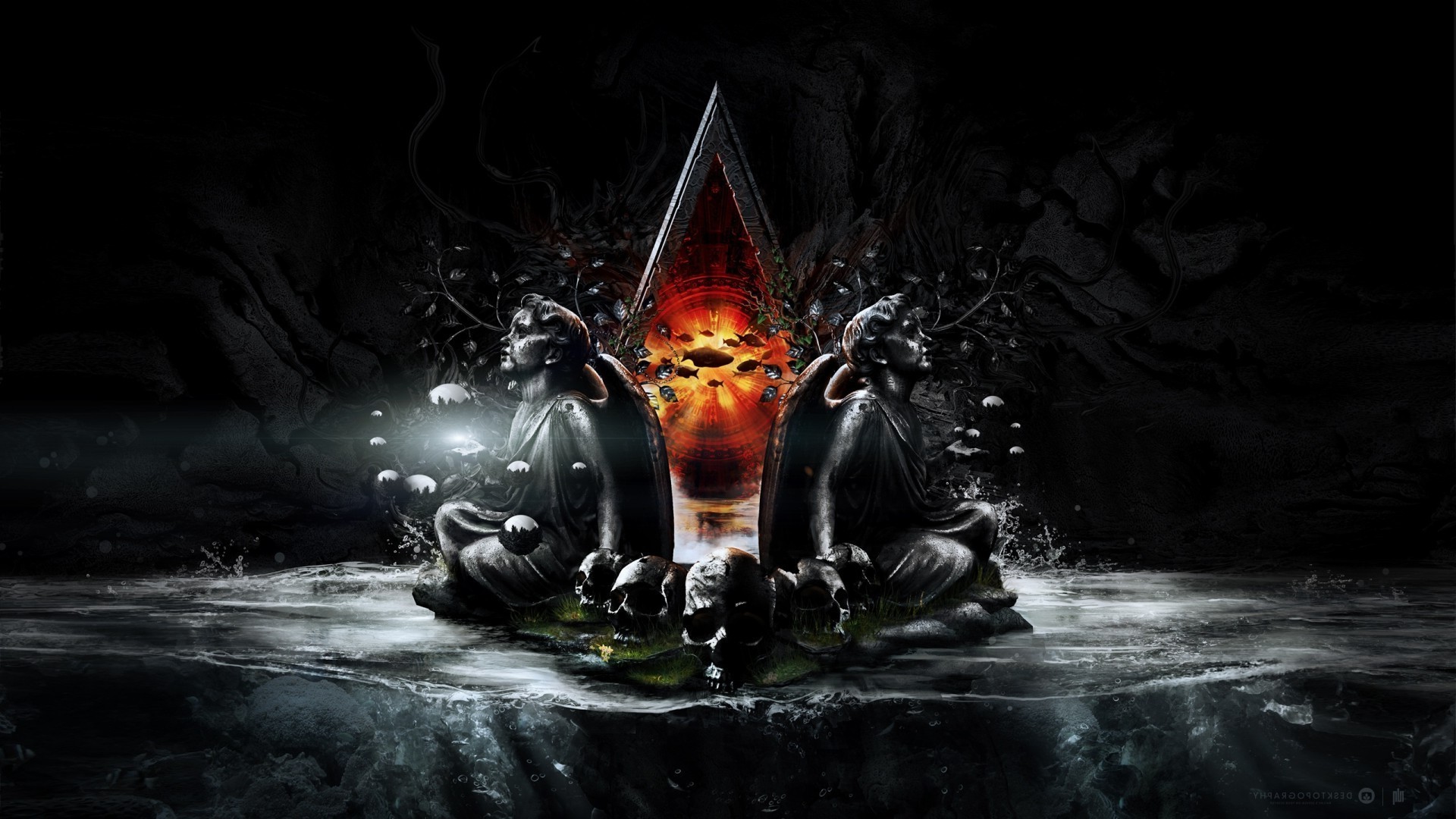 Saturn auf dem hintergrund des meeres auf dem planetenSaturn auf dem Hintergrund des Meeres auf dem Planeten