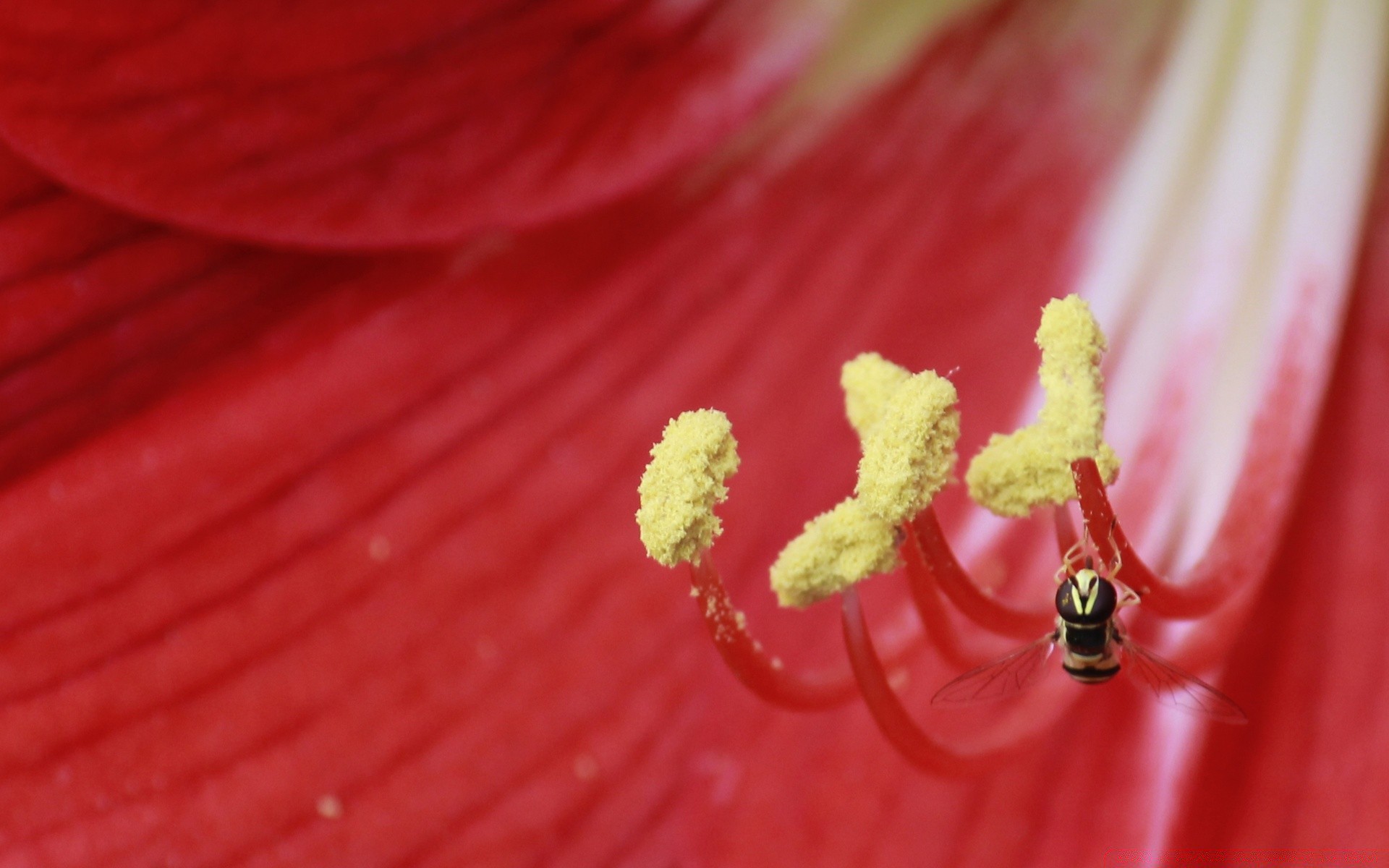 Zartes Bild in rosa Farbtönen mit einer Biene