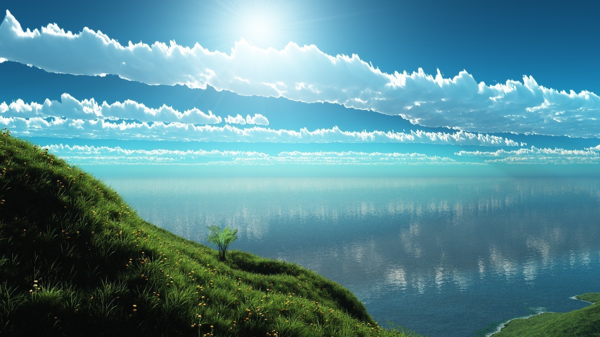 Landschaft mit dem bild des ozeans auf dem hintergrund des himmels