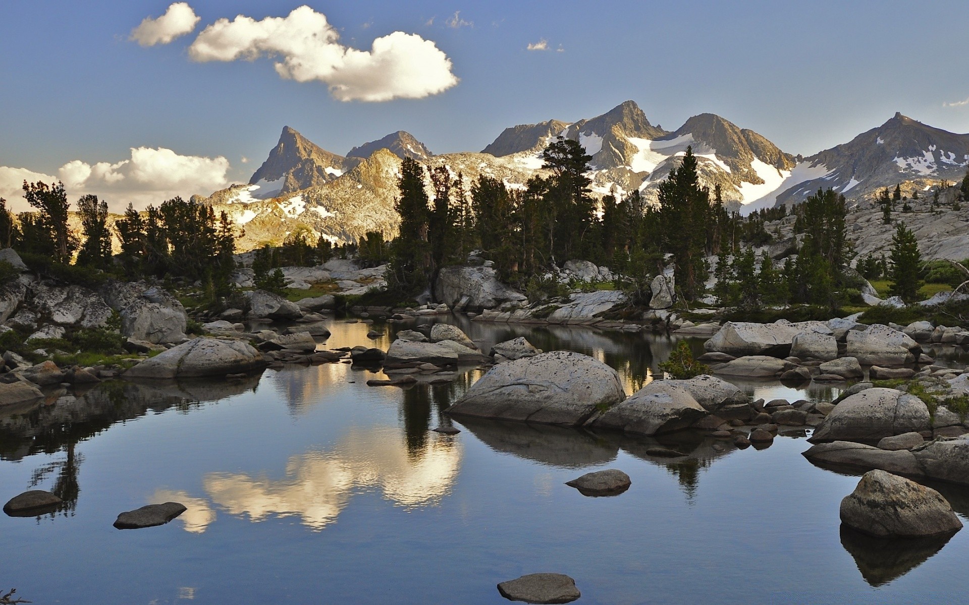 Eine landschaft mit einem sehr blauen himmel und einem leuchtend blauen seeEine Landschaft mit einem sehr blauen Himmel und einem leuchtend blauen See