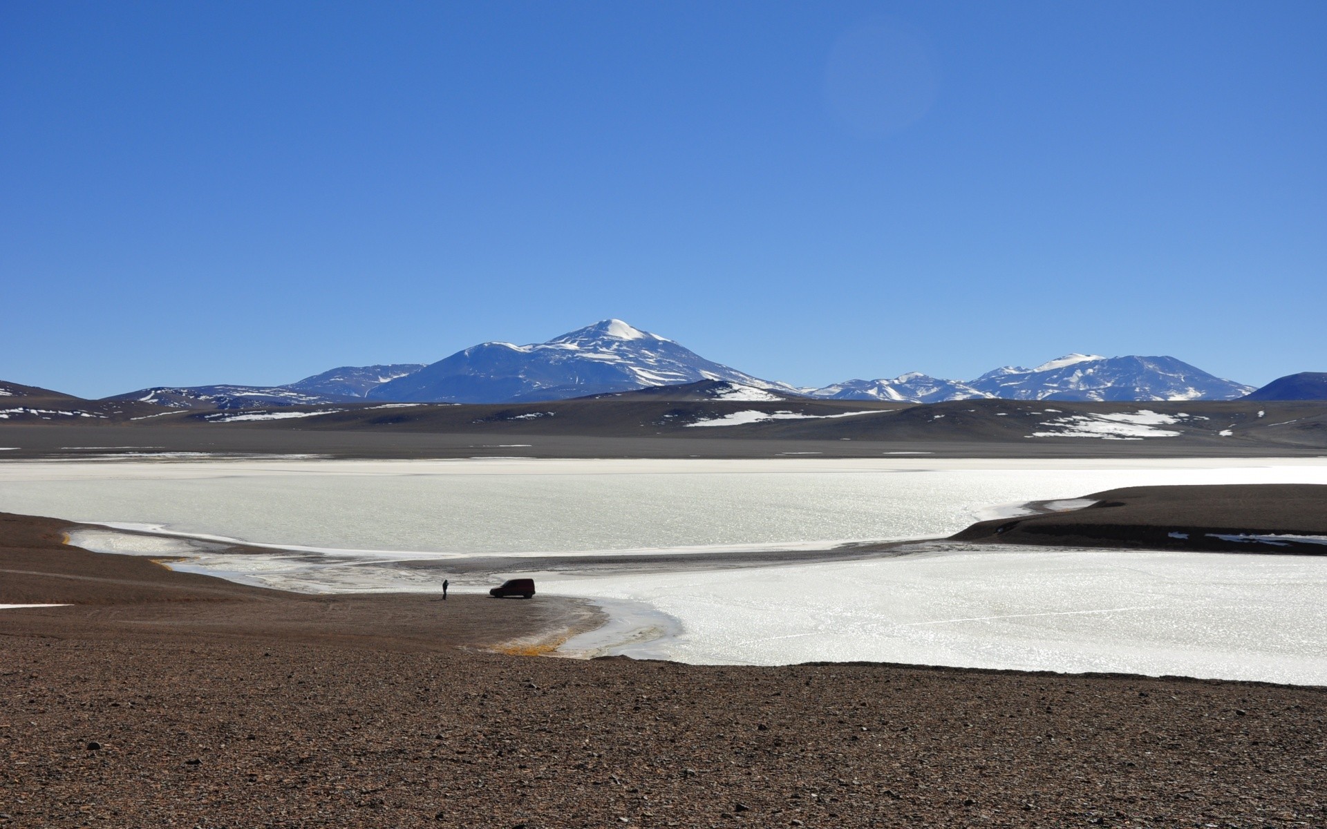 Ein gefrorener Fluss fließt direkt in den Himmel