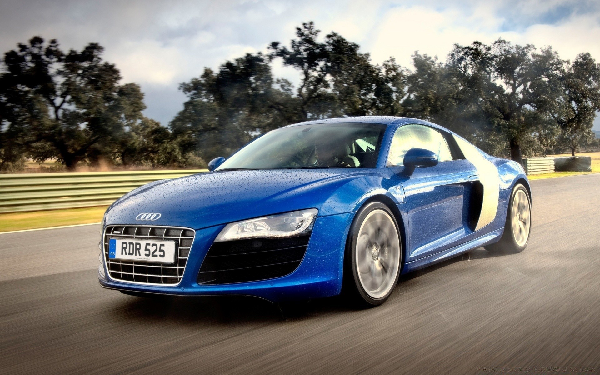 Blauer Rennwagen auf einem blauen Himmelshintergrund