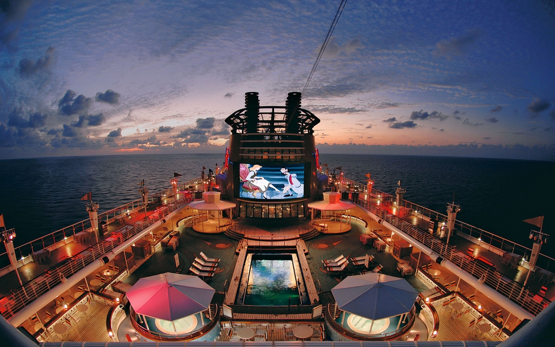 Blick auf die Stadt am anderen Ufer von der Nachtpromenade
