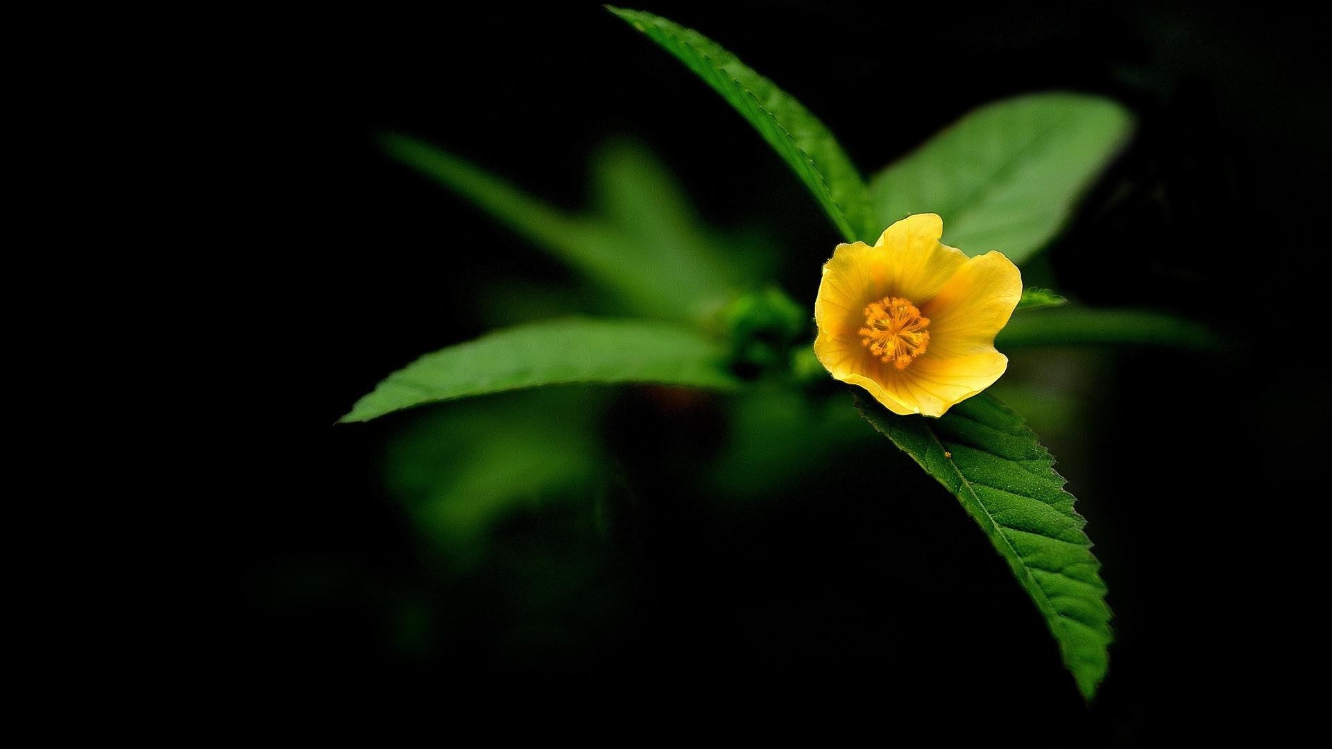 Blume mit Blättern auf schwarzem Hintergrund