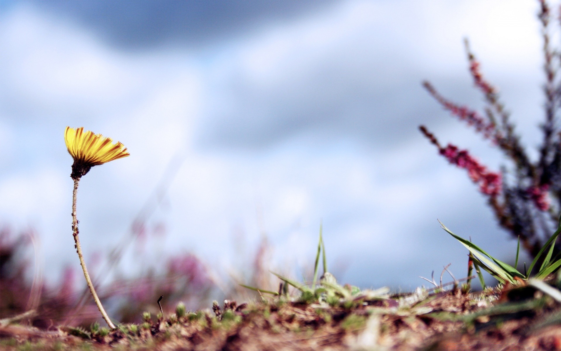 Eine einsame sonnige Blume steht