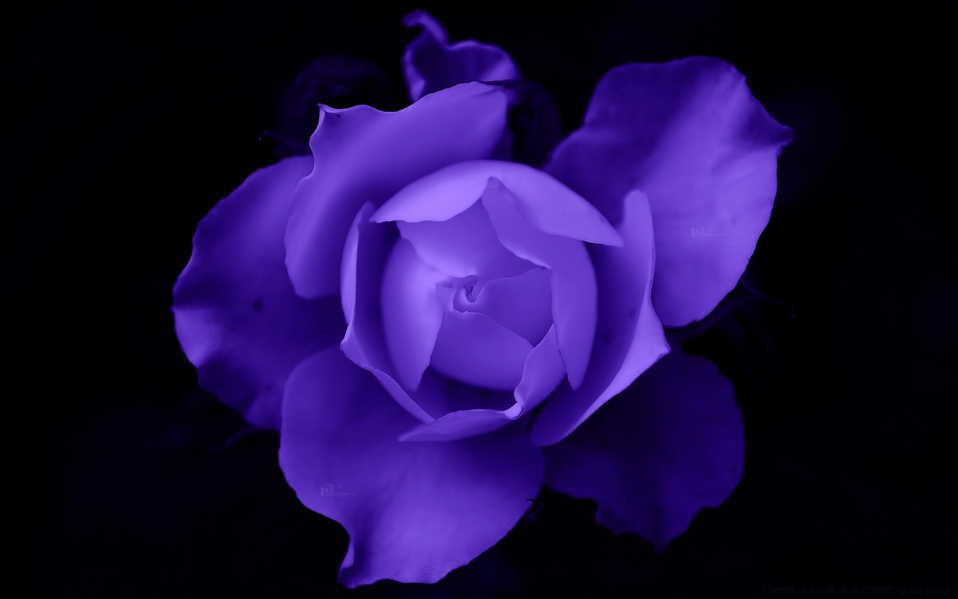 Leuchtend lila Blume auf schwarzem Hintergrund