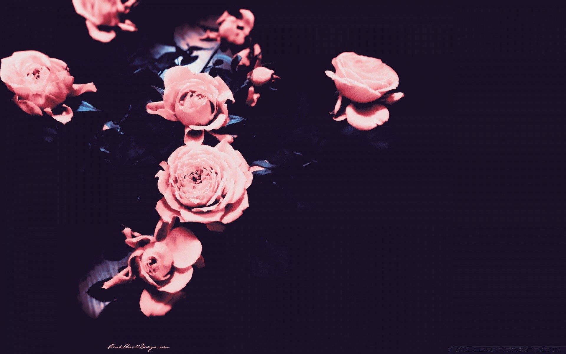 Rote Blume mit nassen Blättern auf dunklem Hintergrund