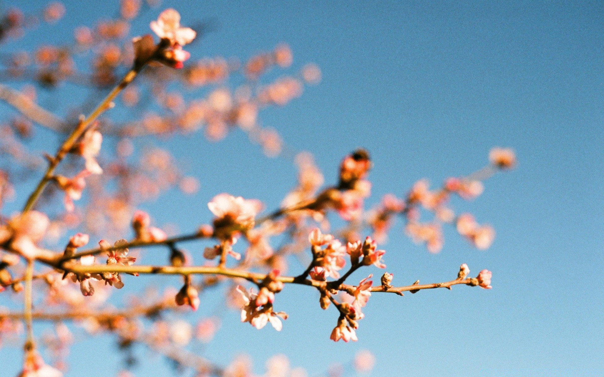 Feuilletons Blumen auf einem verschwommenen Hintergrund von Blumen