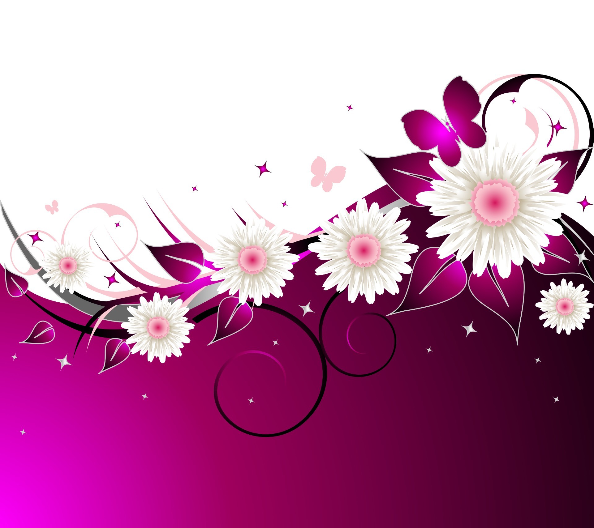 Rosa und weißes Bild mit Blumen und Schmetterlingen