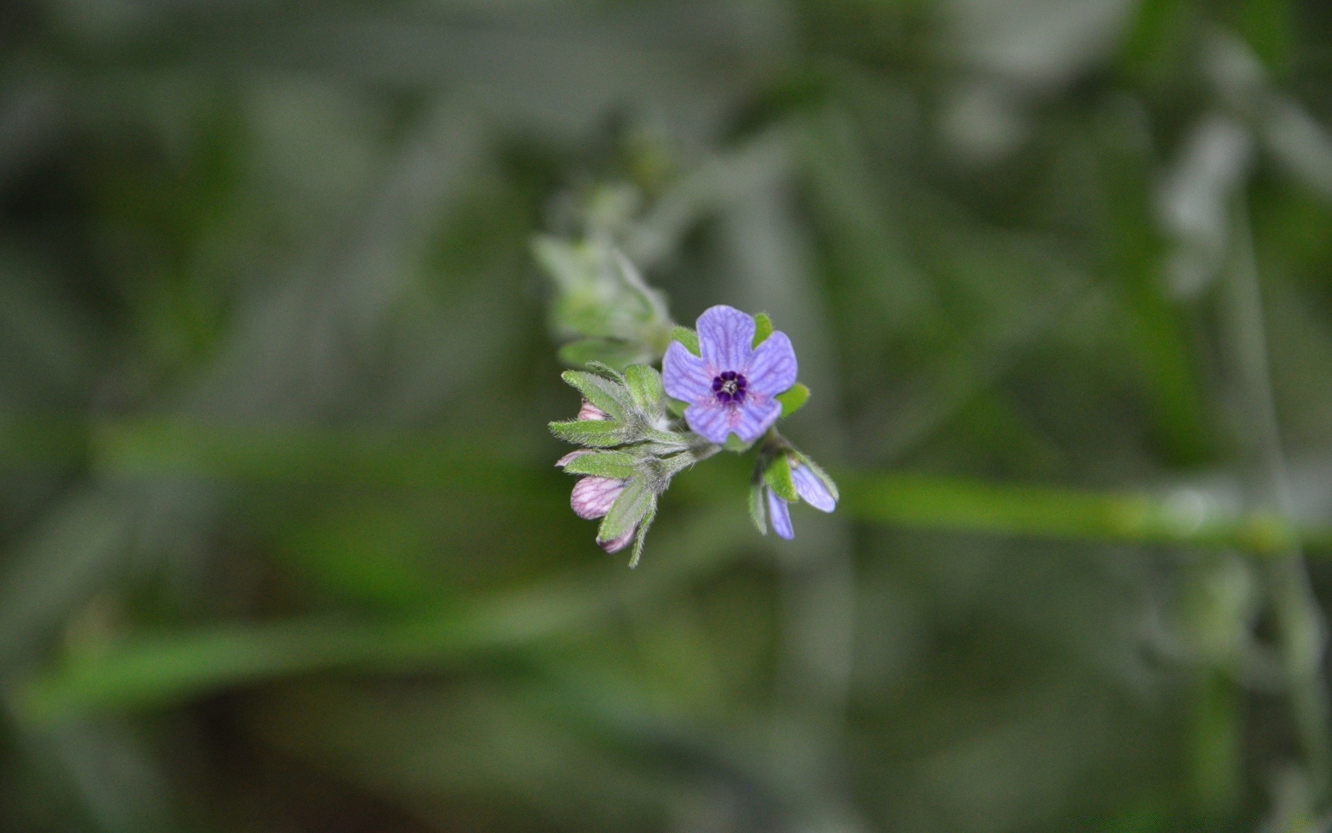 Bunte Blumen in Flecken auf grünem Hintergrund