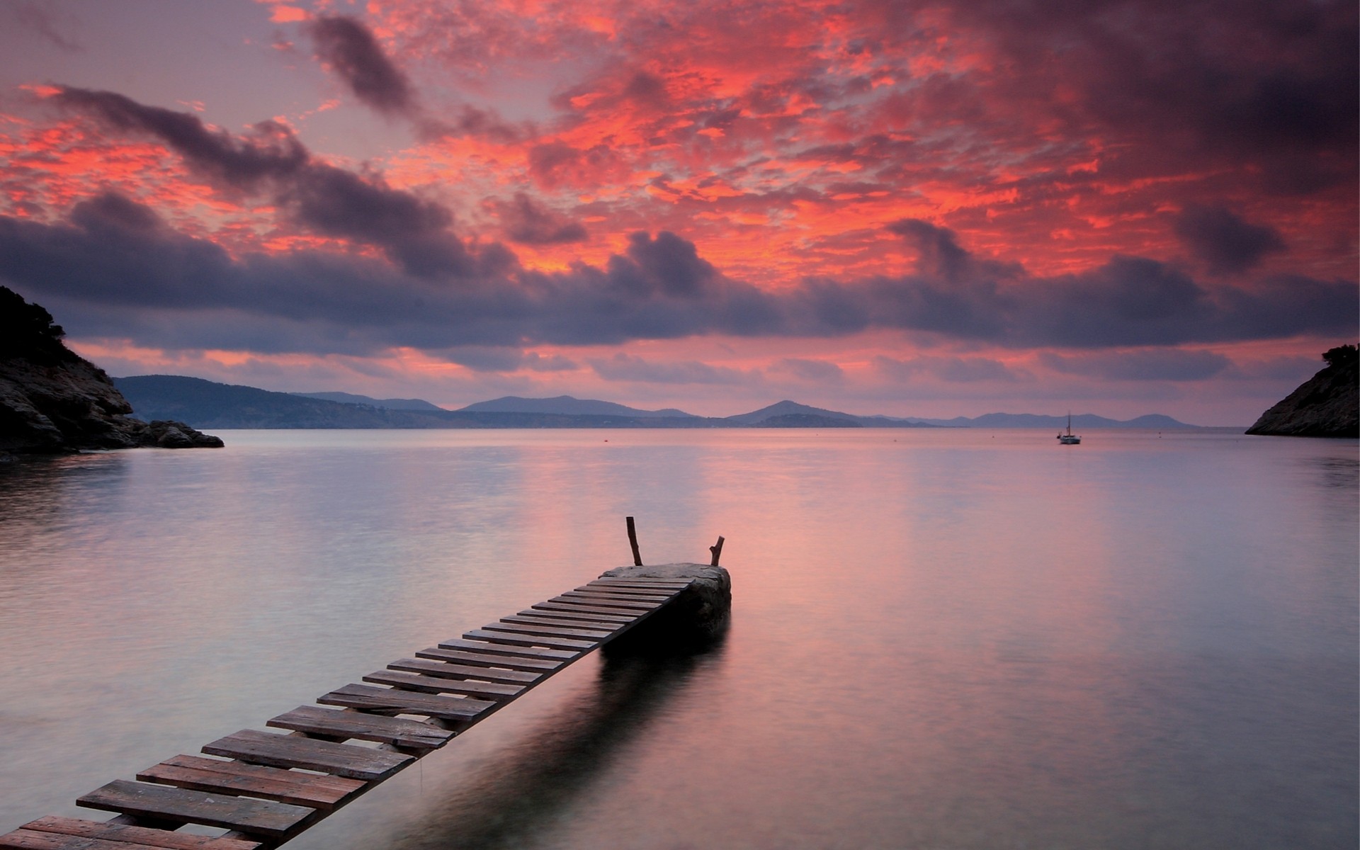 Der sonnenuntergang spiegelt sich im wasser auf der insel widerDer Sonnenuntergang spiegelt sich im Wasser auf der Insel wider